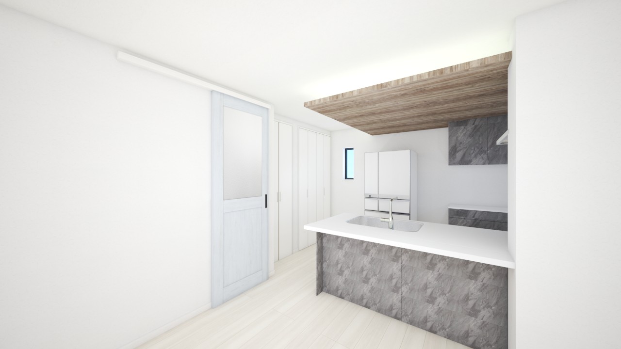 ・キッチン折下天井×リビング折上天井で立体感のあるLDKを創造
